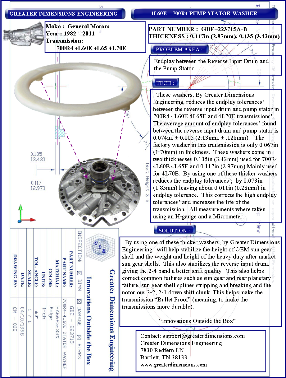 drum and pump stator in 700R4, 4L60E and 4L65E transmissions’. The